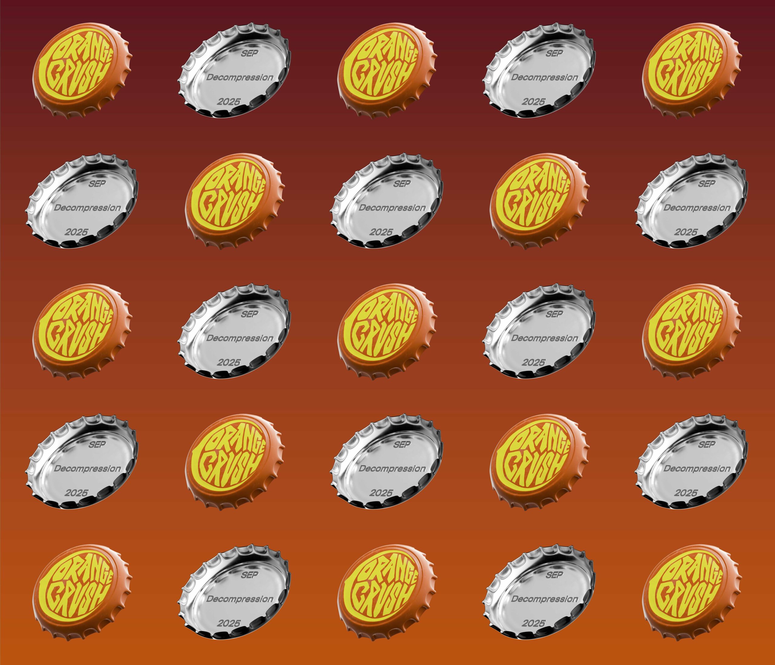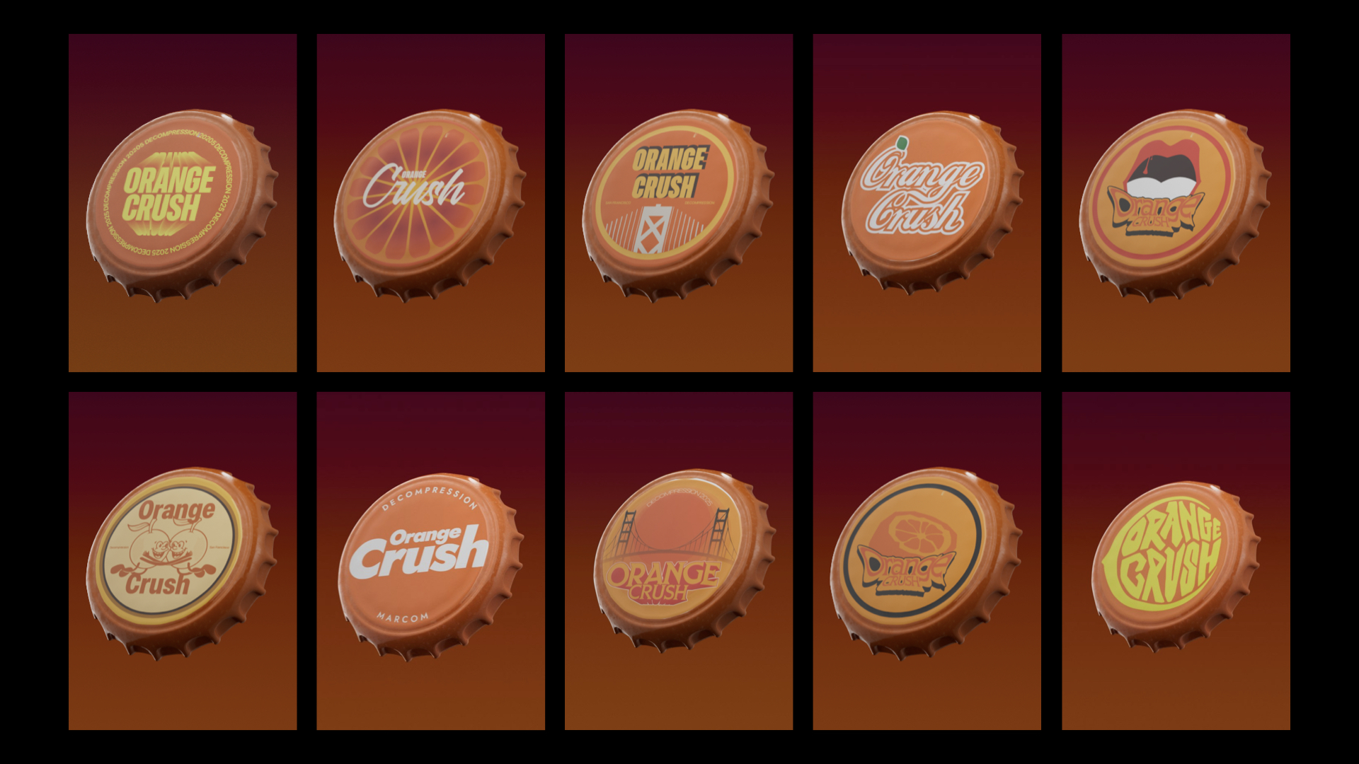 The art direction this year was briefed as punk—visceral, liquid, sexy, with a rock-and-roll edge. Thus, drawing from the cultural icon of the Orange Crush soda, the design concept centered on a custom bottle cap motif, blending rebellious energy with a refreshing, celebratory spirit to create a bold visual identity for the event.